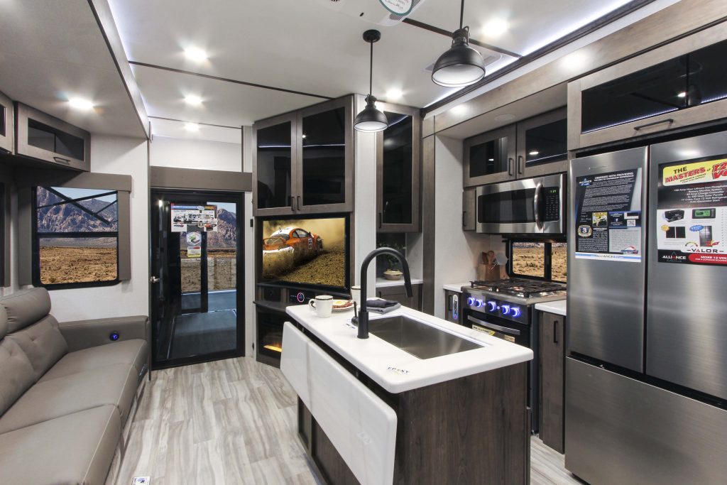 Over a year in the making, driven by feedback from you. Valor delivers the bold mix of features you demand in a hauler while breaking new ground in the industry and courageously engineering a superior hauler that maximizes comfort, convenience, efficiency, towability and the best ownership experience on the planet. Welcome to your generation of haulers. Go farther, boondock longer, and enjoy the piece of mind that ownership of an ALLIANCE RV affords you. Interior Options: 3 Seasons Patio Door – Glass Doors, Queen Bed Suite (In Place of King Bed Suite). Exterior Options: Ramp Door Patio Package w/ Step, Generator – Onan 5.5 kw Gas Generator, Dual Pane Windows, Solar.