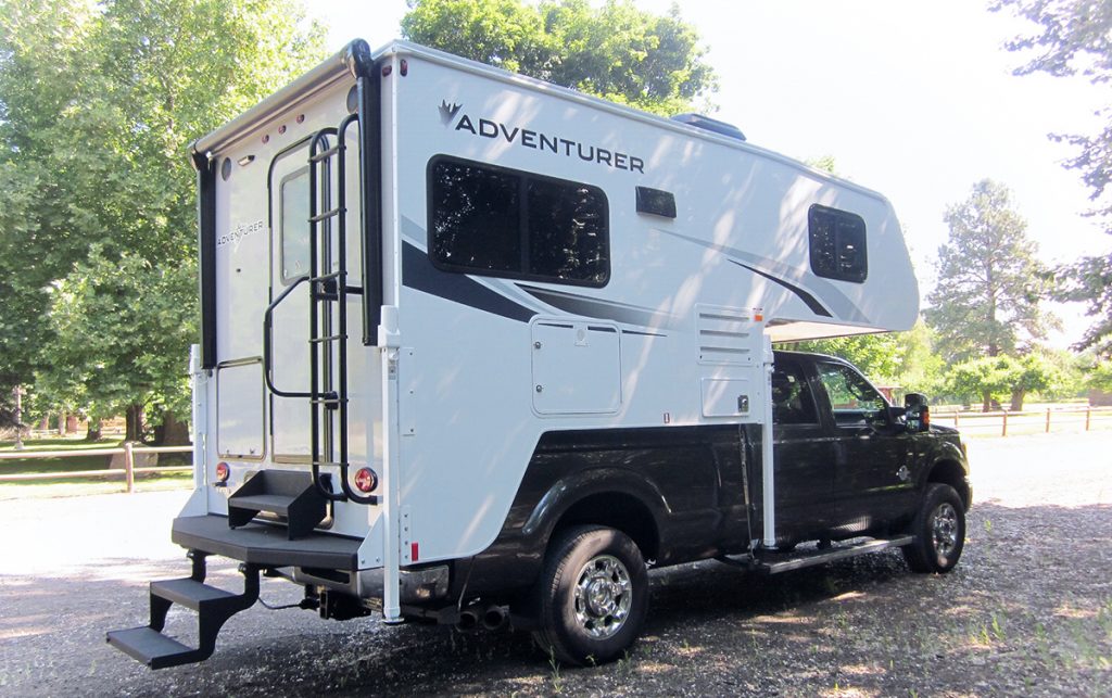 The 80RB is Adventurer’s lightweight, value leader and fits most popular light-duty, full size super short (5.5′), short (6′, 6.5′, 6.75′) and long-bed (8′) trucks. The unit features a beautiful North/South bedroom with dual side windows, a bright bathroom equipped with a toilet, shower & skylight, an L-shaped galley with plenty of counter space, and a 72” roll-over sofa that makes into a 40” x 72” bed. The fully featured kitchen includes stainless steel appliances like a round sink, 2-burner cooktop, a Dometic 4 c. ft. fridge/freezer, and a microwave. Each camper is backed with Adventurer’s 3-year Structural Warranty.