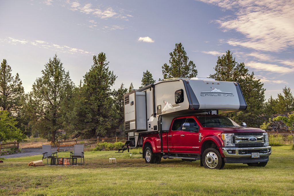 The Eagle Cap 1165 is a luxurious triple slide camper build for dually and 1-ton trucks. Inside the galley, you’ll find an expansive cooking space with a kitchen island and homey, stainless-steel appliances like an oven, microwave, fridge, and double bowl sink. The 1165 offers several exclusive features for the living space, like Theatre Seating Recliners or a Cozy Sofa, a 32” LCD 12V TV, and the Dream Dinette, bringing sleeping capacity to 6. It’s your home away from home, with everything you need to travel very, very well.
